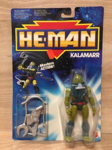 Die erste Farbvariante erhielt eine silberne Bemalung am Hintern. Ursprünglich war bei Kalamarr die Verwendung eines runden eiförmigen Helms geplant. Letztendlich wurde allerdings ein konisch geformter Helm produziert. Die Version mit dem runden Helm wird auch auf der Kartenrückseite gezeigt. Referenzen dazu sind die ersten Mattel Händlerkataloge sowie Werbemagazine, welche ebenfalls auf dieser Homepage einsehbar sind.