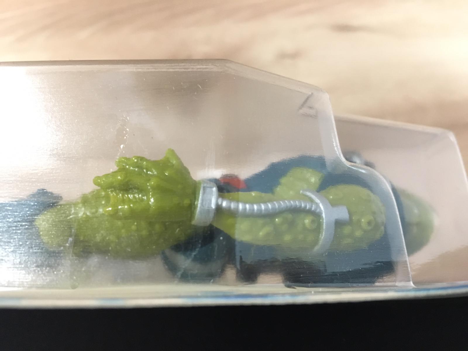 Wissen: Slushhead wurde nie auf US Einzelkarte produziert. Man kann Slushhead nur als Namen auf der Rückseite der ersten US Karten oder auf der Rückseite von den 2 Two Pack Varianten lesen. Die Two Pack Variante mit dem BONUS Aufdruck gibt es, nur ich habe sie bisher noch nicht in meiner Sammlung bzw. als ich sie einmal hatte, leider vergessen ein Foto zu machen. Wie man an der Spain Variante erkennen kann, besteht die Möglichkeit, dass die Flüssigkeit im Helm verdunstet. Die Umstände dafür sind mir nicht bekannt.